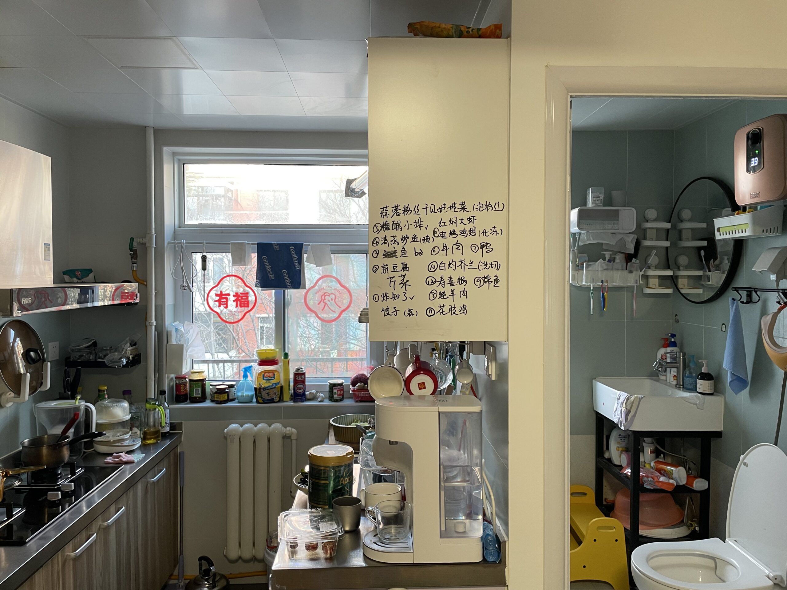 年前,Y开始期待年夜饭,于是我们在橱柜上开始列今年的菜单。